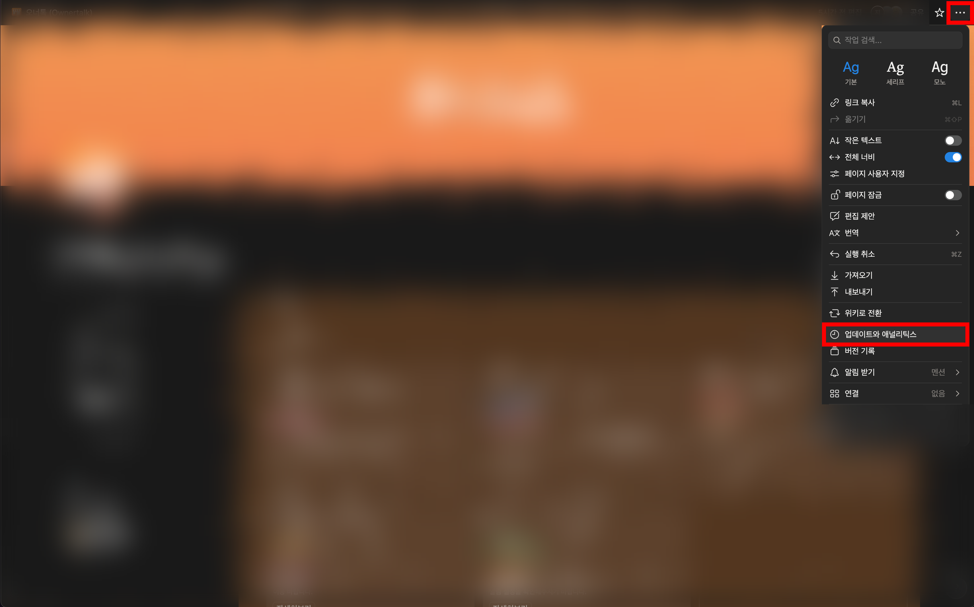 ํ์ด์ง ์ฐ์ธก ์๋จ์ ์์นํ โ๋ฉ๋ดโ ๋ฒํผ์ ๋๋ฅธ ํ, โ์ ๋ฐ์ดํธ์ ์ ๋๋ฆฌํฑ์คโ๋ฅผ ๋๋ฆ ๋๋ค.