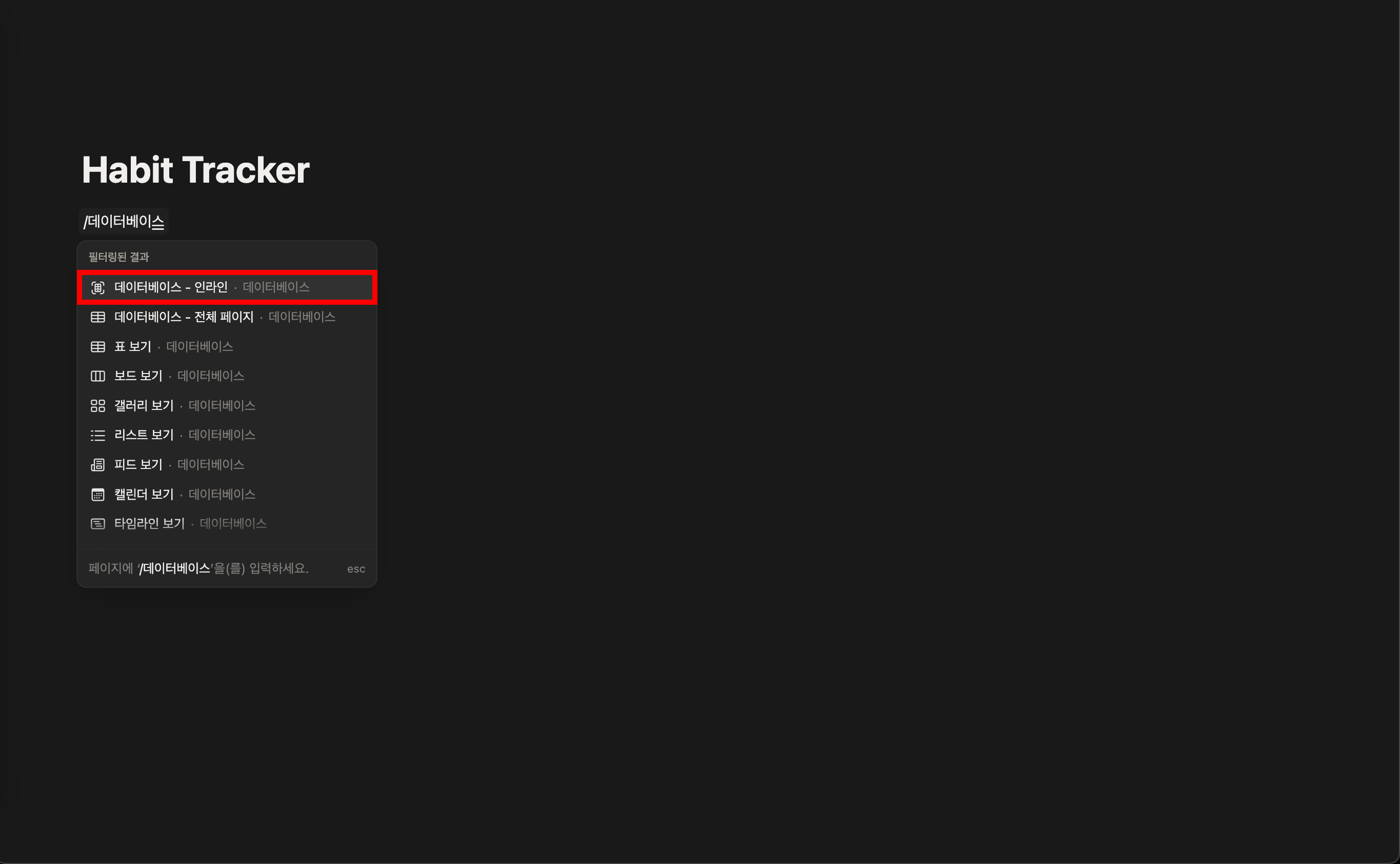 ์์ฑํ ์ ๋ชฉ ์๋์ "/๋ฐ์ดํฐ๋ฒ ์ด์ค"๋ฅผ ์ ๋ ฅํ ํ "๋ฐ์ดํฐ๋ฒ ์ด์ค - ์ธ๋ผ์ธ" ์ต์ ์ ์ ํ,