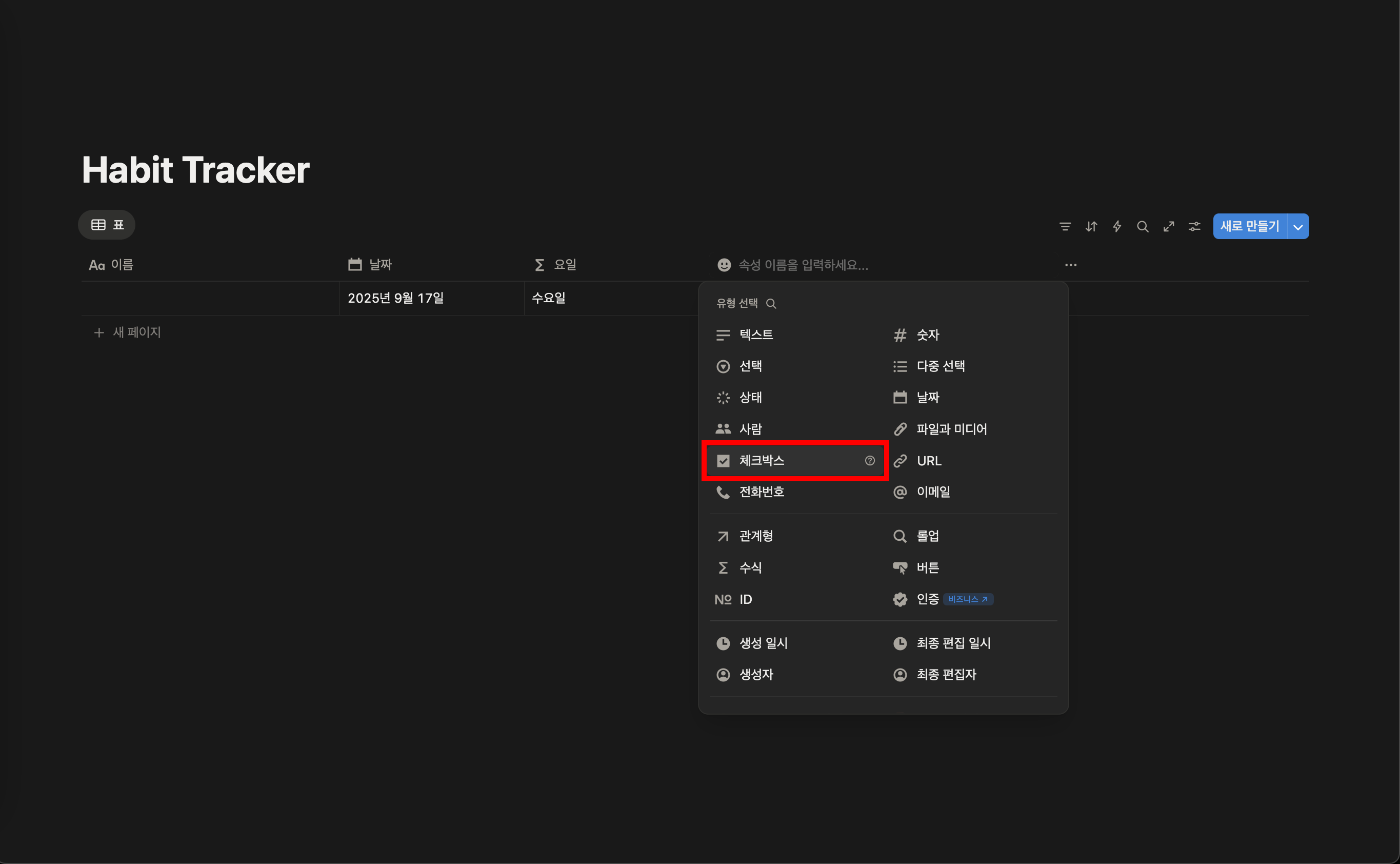 "๋ ์ง" ์์ฑ์ ํด๋ฆญํ์ฌ ์ถ๊ฐํ๋ค.