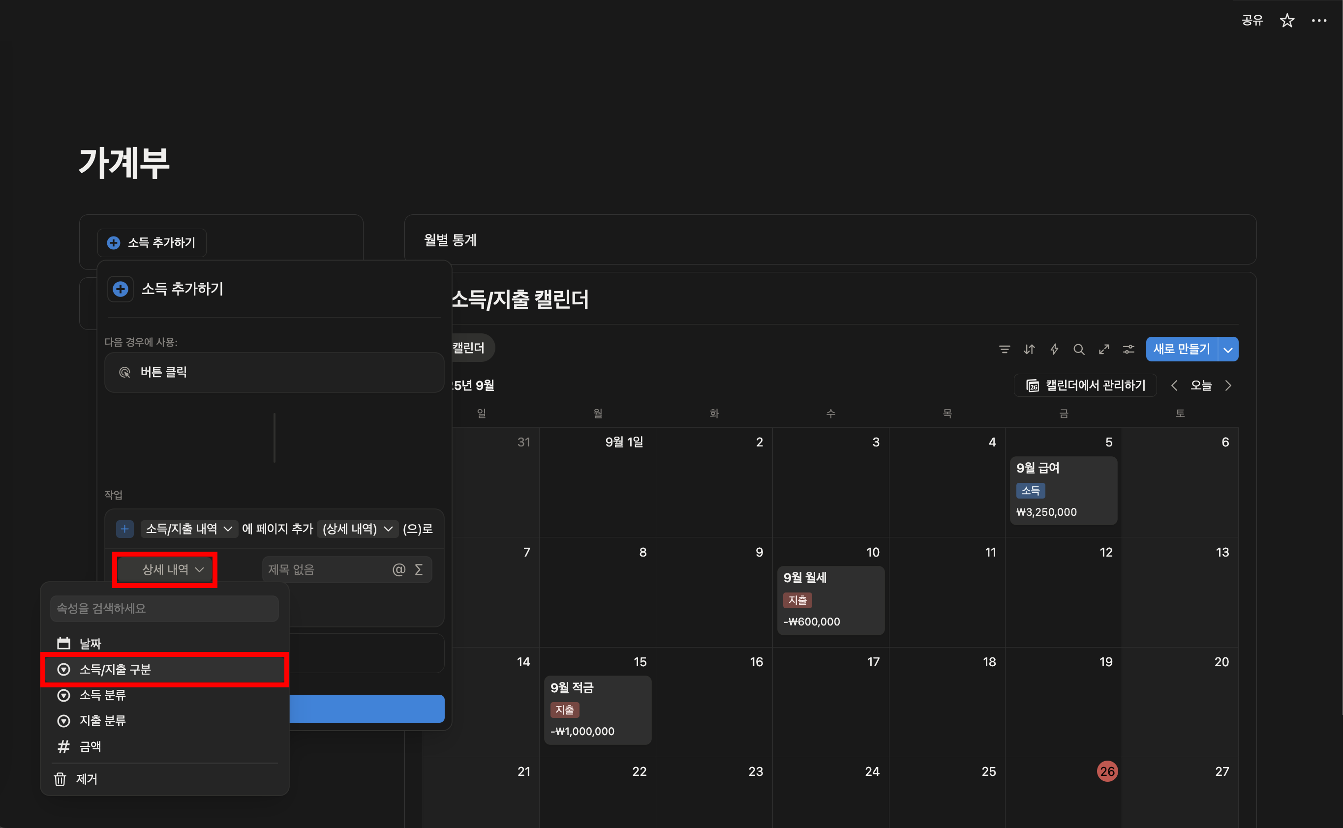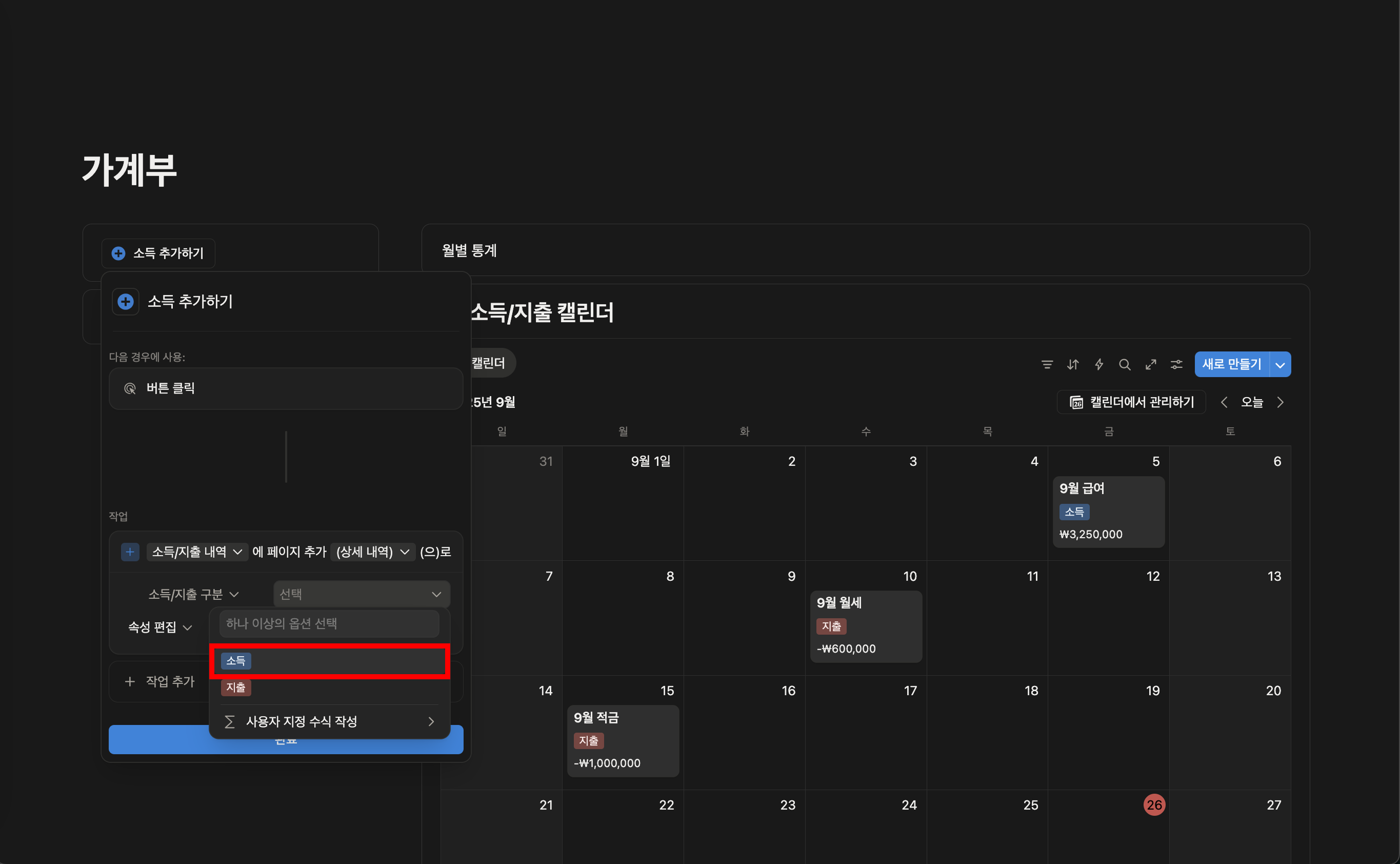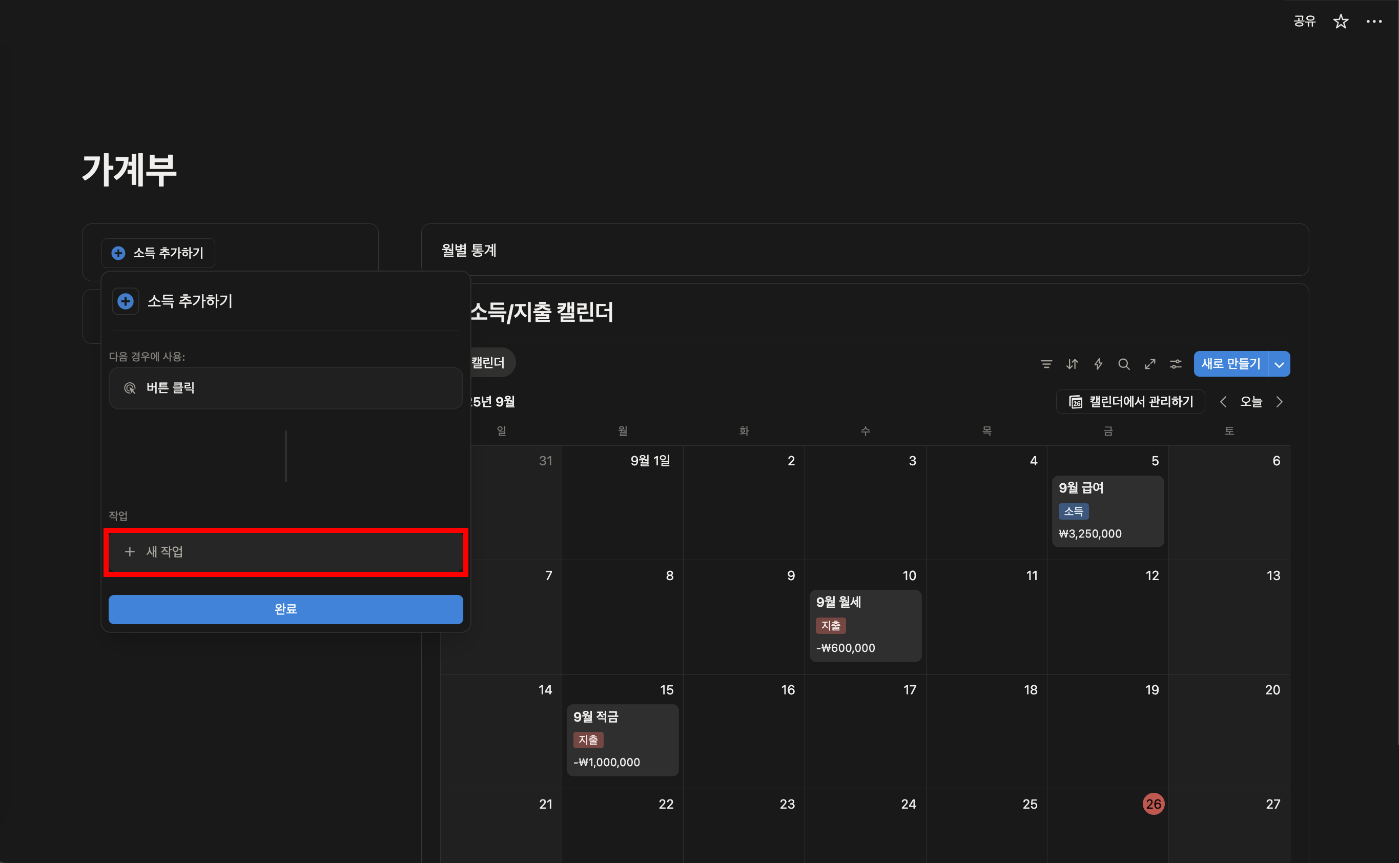 "์๋/์ง์ถ ๋ด์ญ" ๋ฐ์ดํฐ๋ฒ ์ด์ค ํ์ด์ง๋ฅผ ์ง์ ํ๋ค.
