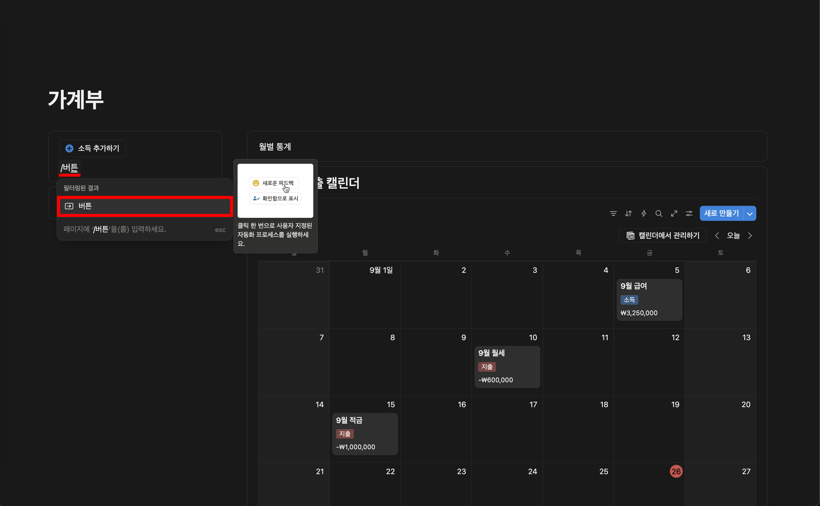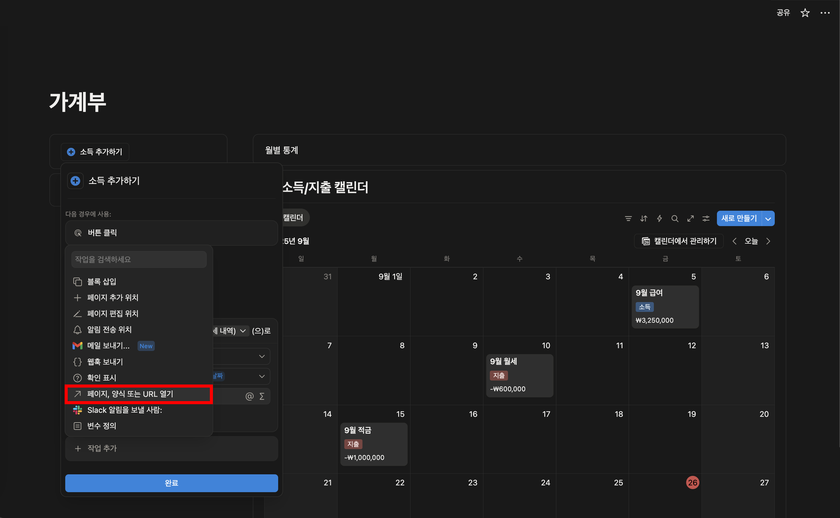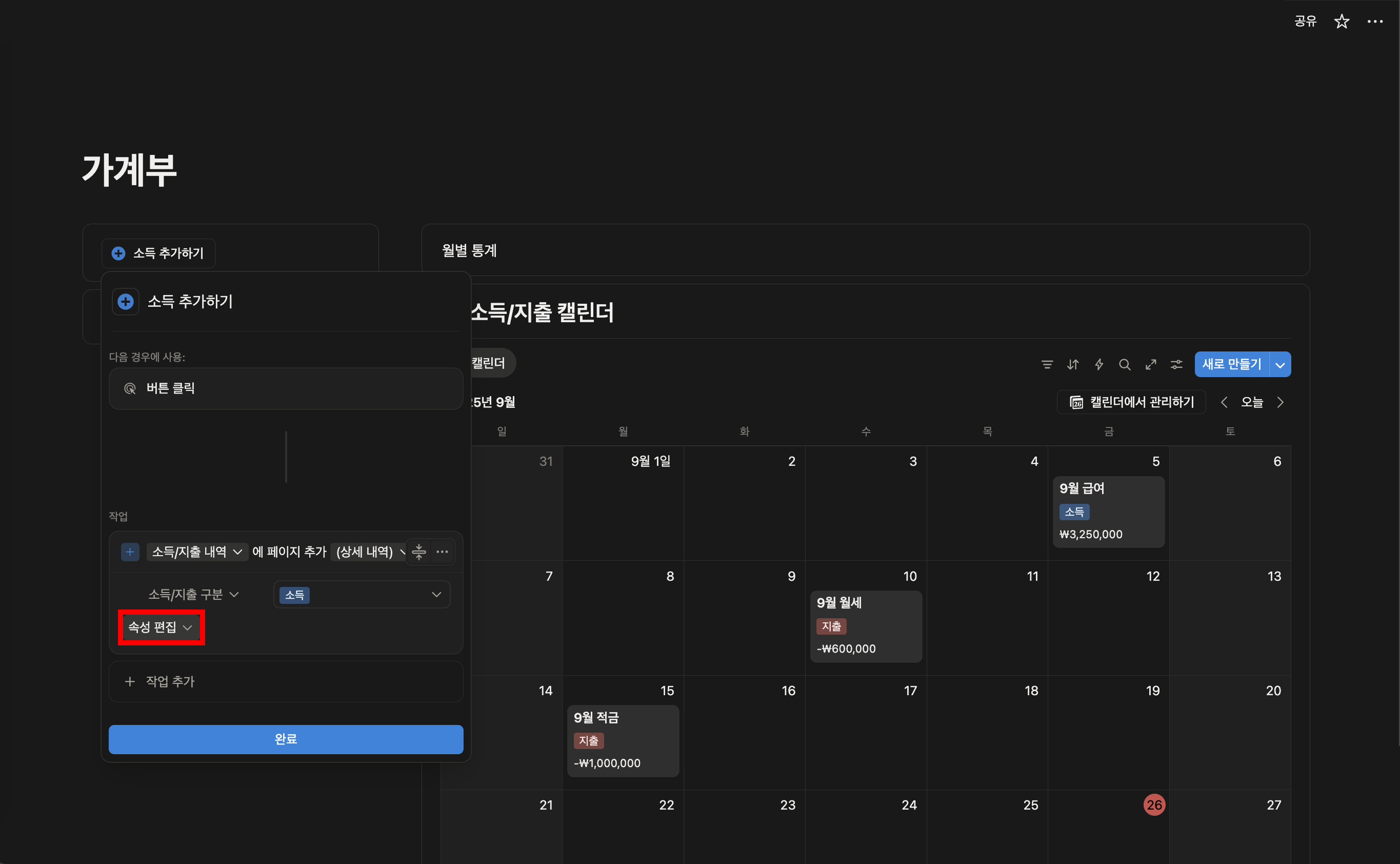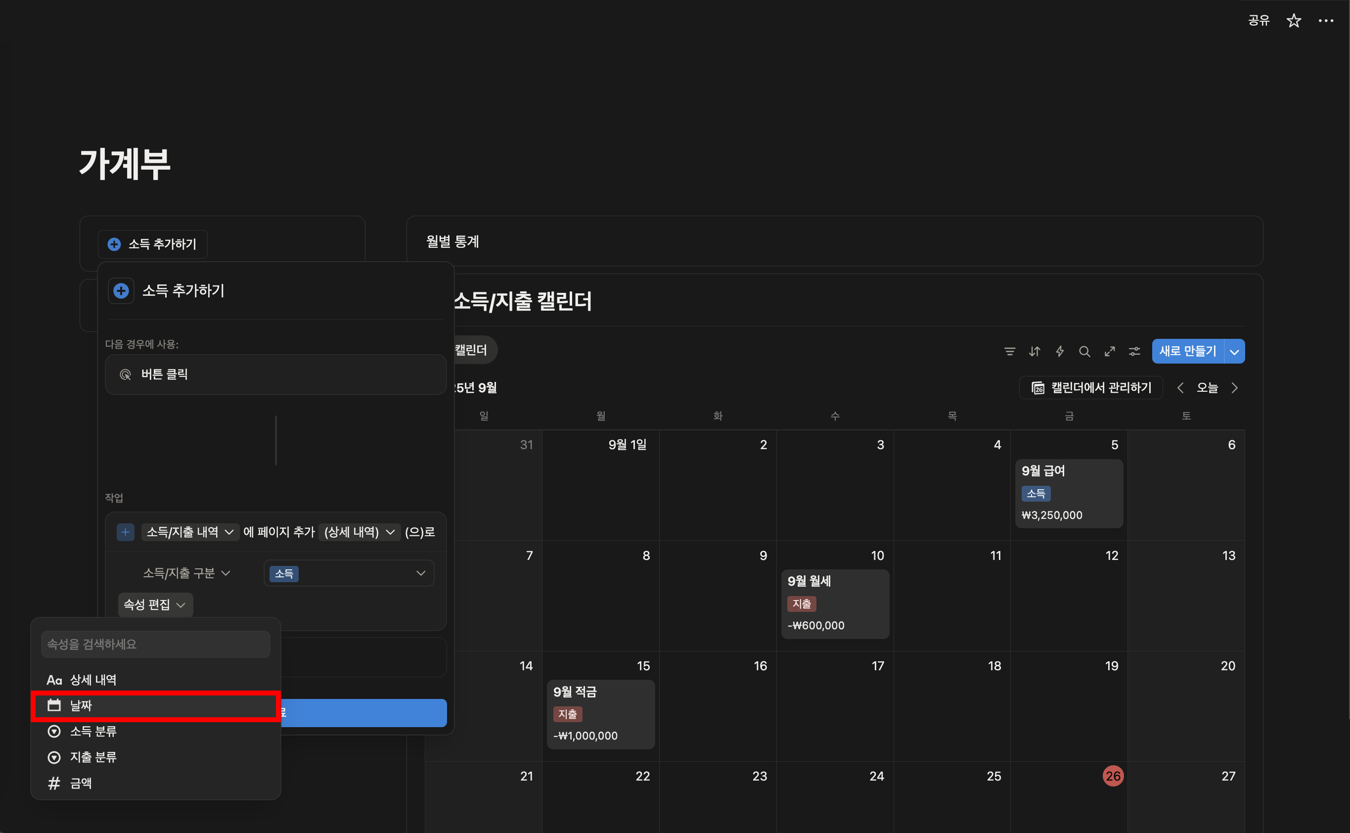 "์๋/์ง์ถ ๋ด์ญ" ๋ฐ์ดํฐ๋ฒ ์ด์ค ํ์ด์ง๋ฅผ ์ง์ ํ๋ค.