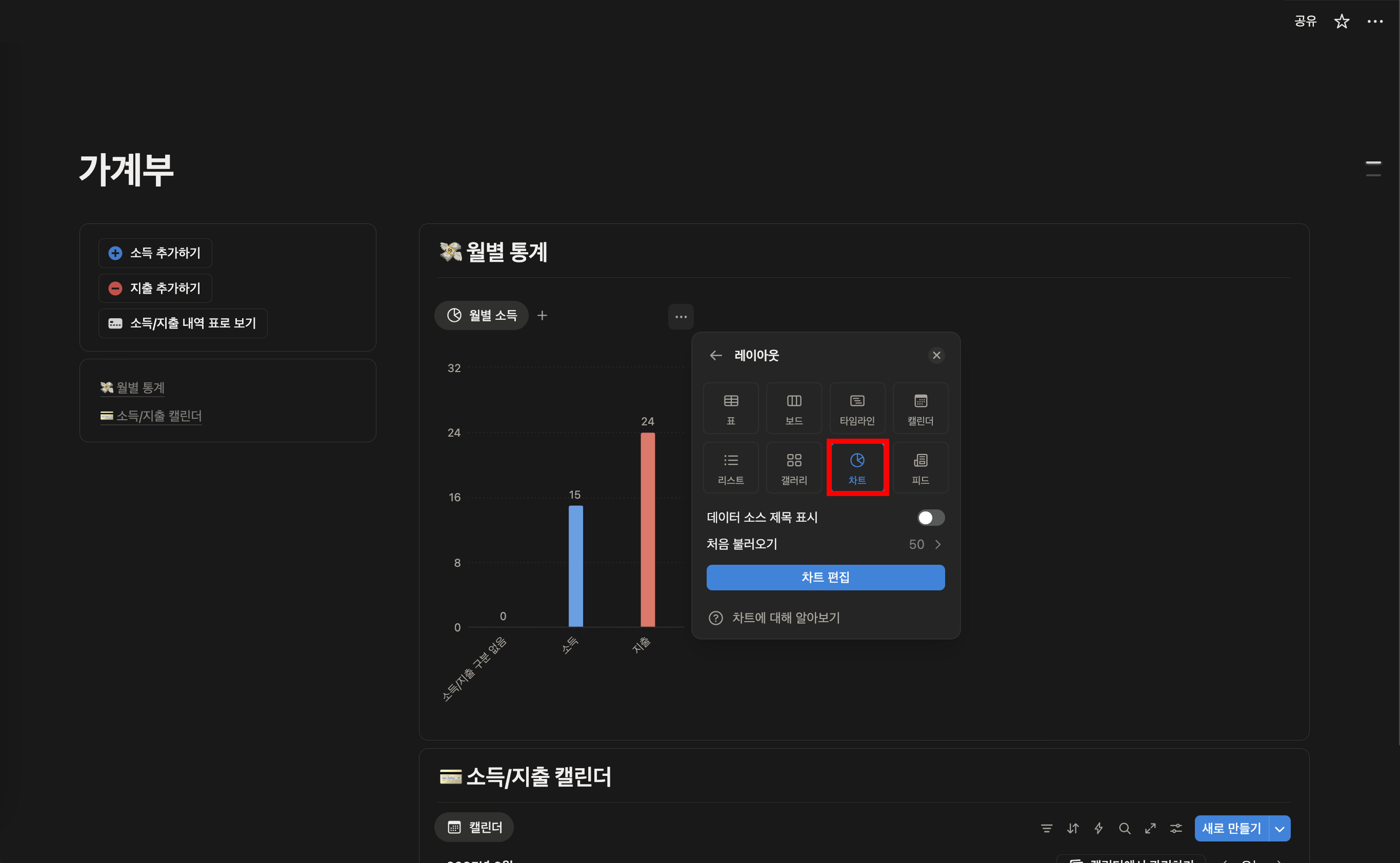 "์ฐจํธ ํธ์ง" ๋ฒํผ์ ๋๋ฅธ๋ค.