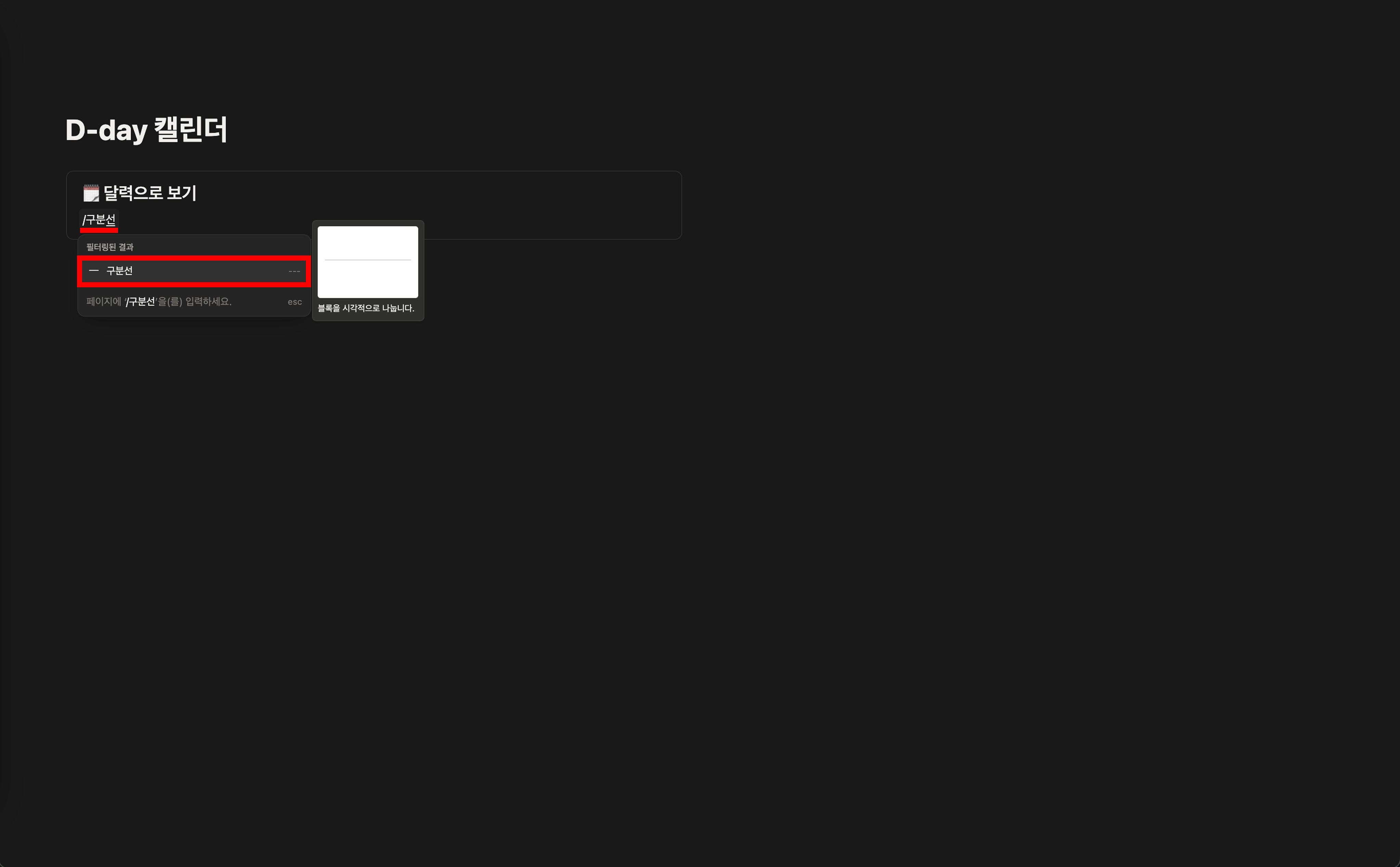 ์ ๋ ฅํ ์ ๋ชฉ ์๋์์ "/๊ตฌ๋ถ์ " ์ ๋ ฅ ํ "๊ตฌ๋ถ์ " ์ต์ ์ ์ ํ,