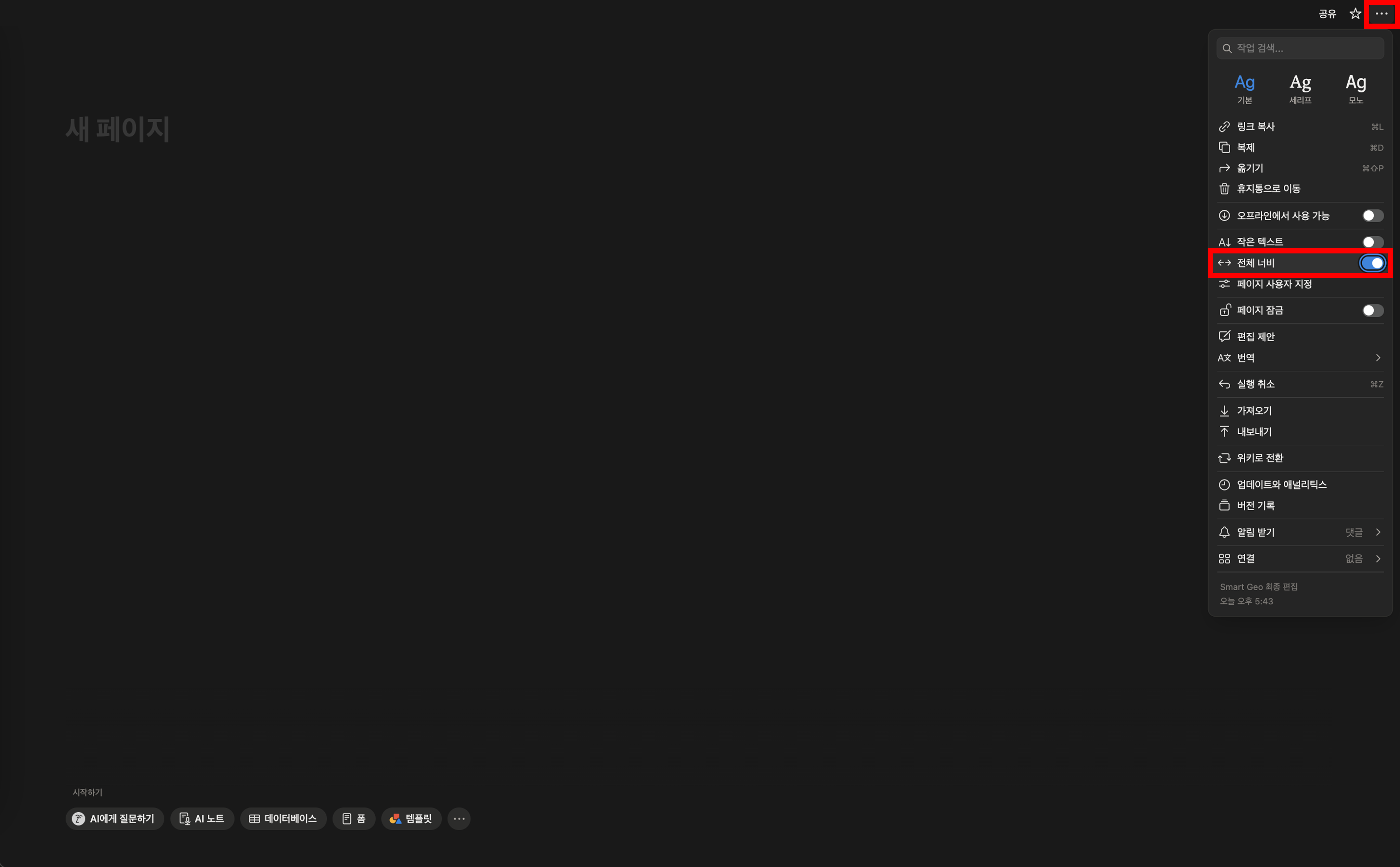 "์ ์ฒด ๋๋น" ์ต์ ์ "ํ์ฑํ"์ํจ๋ค.