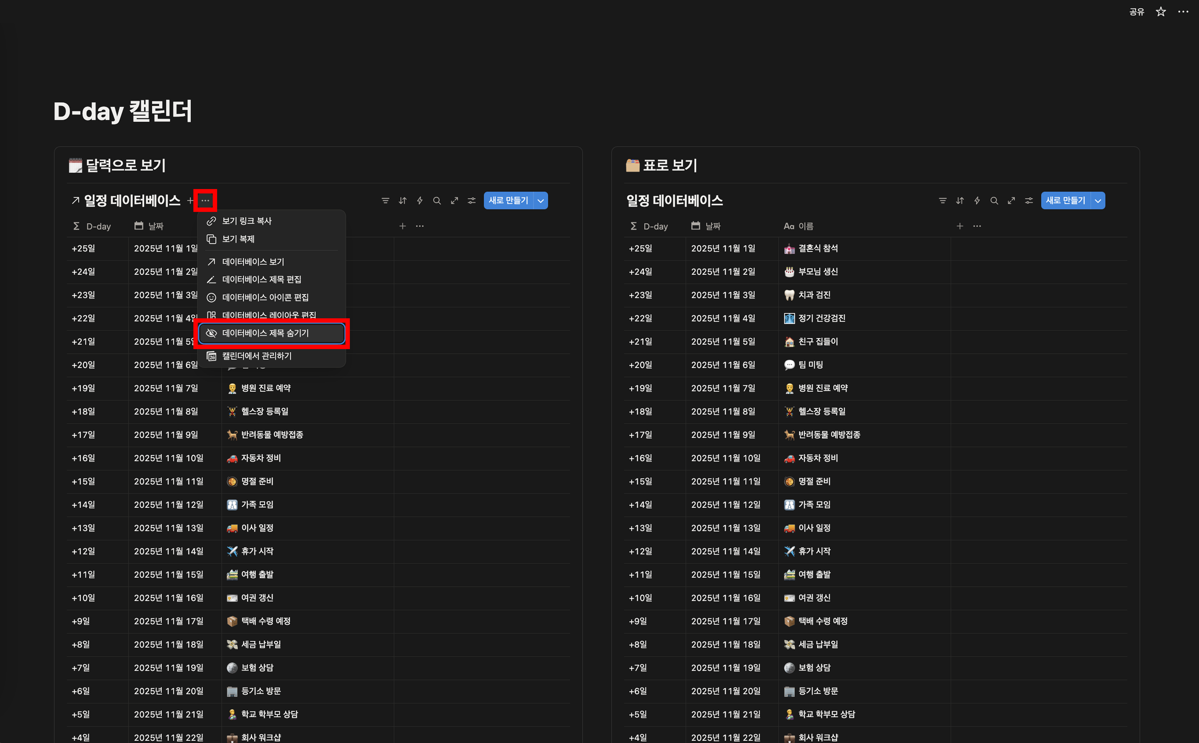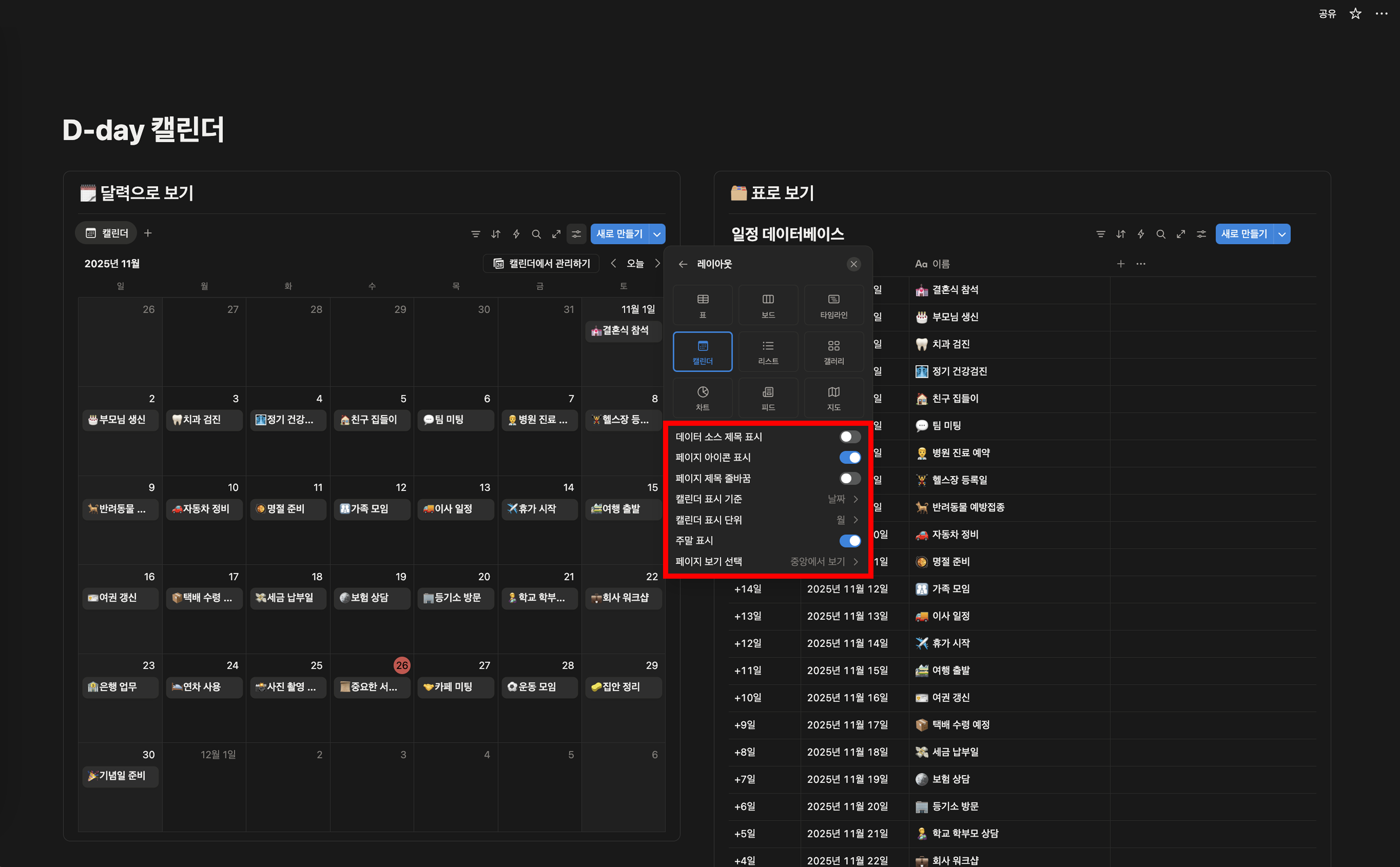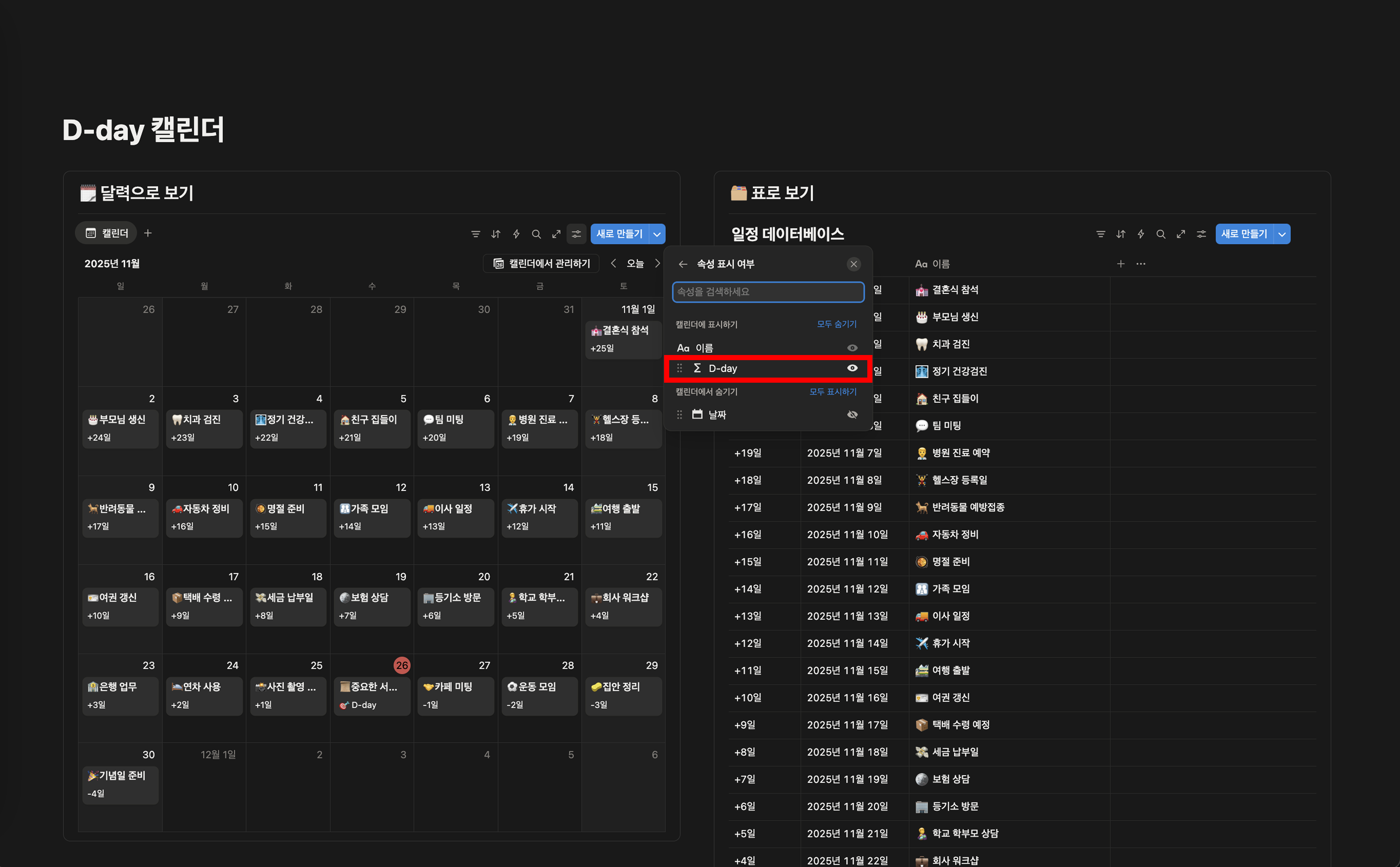"D-day" ์์ฑ์ด ํ์๋๋๋ก ์ค์ ํ๋ค.