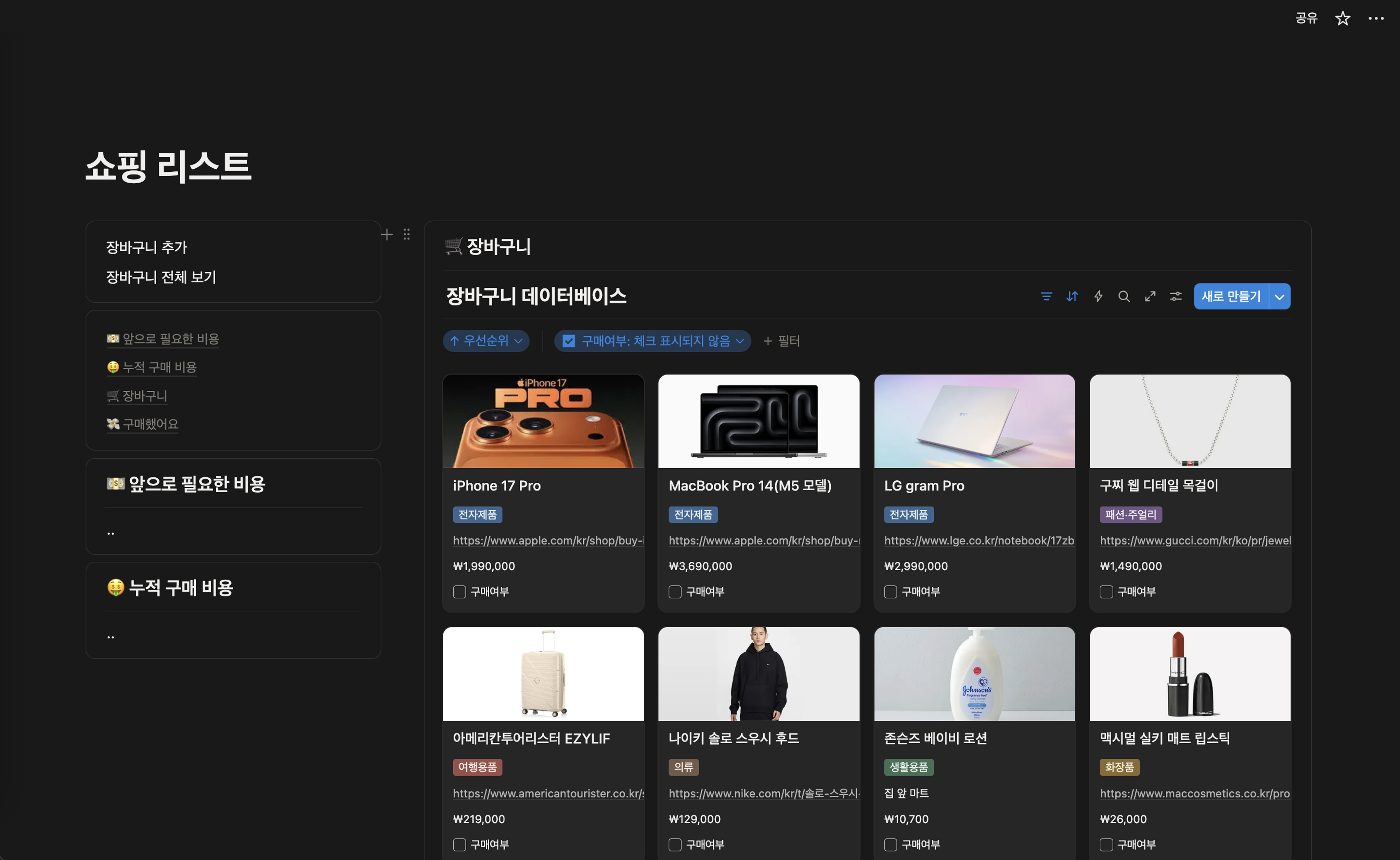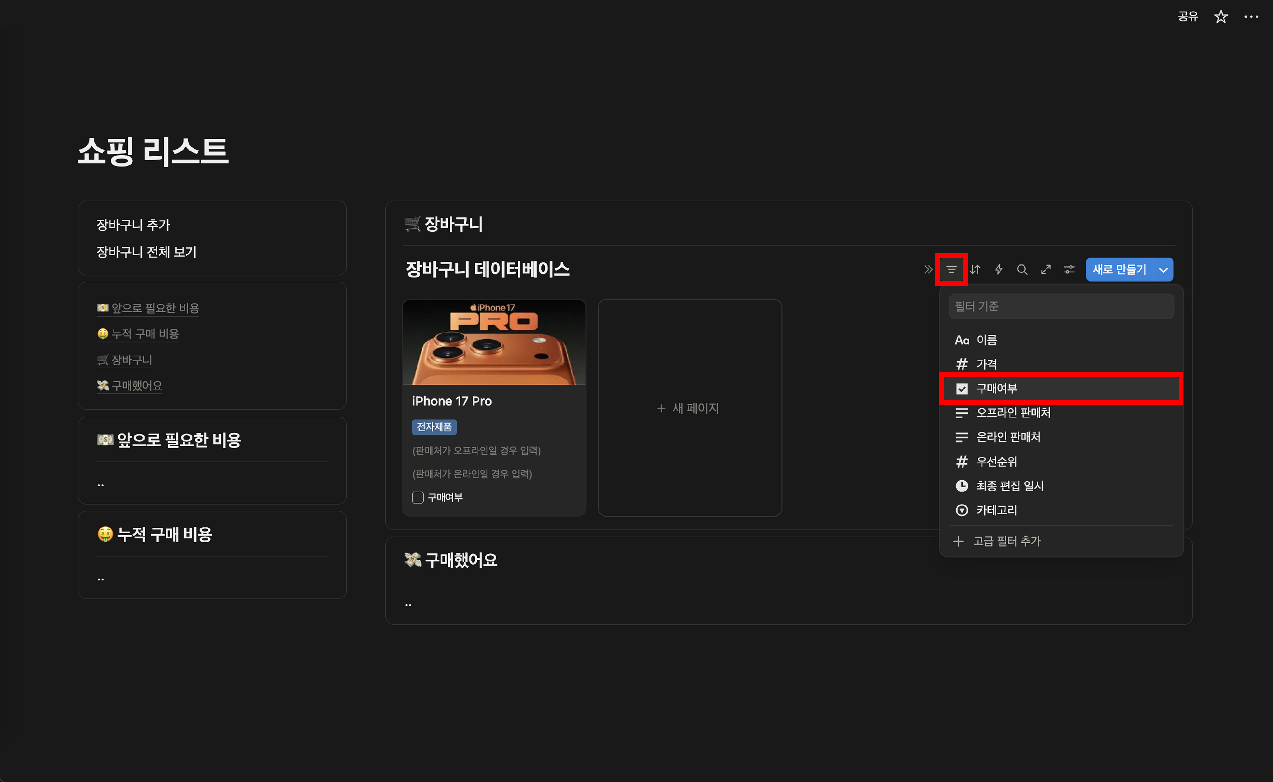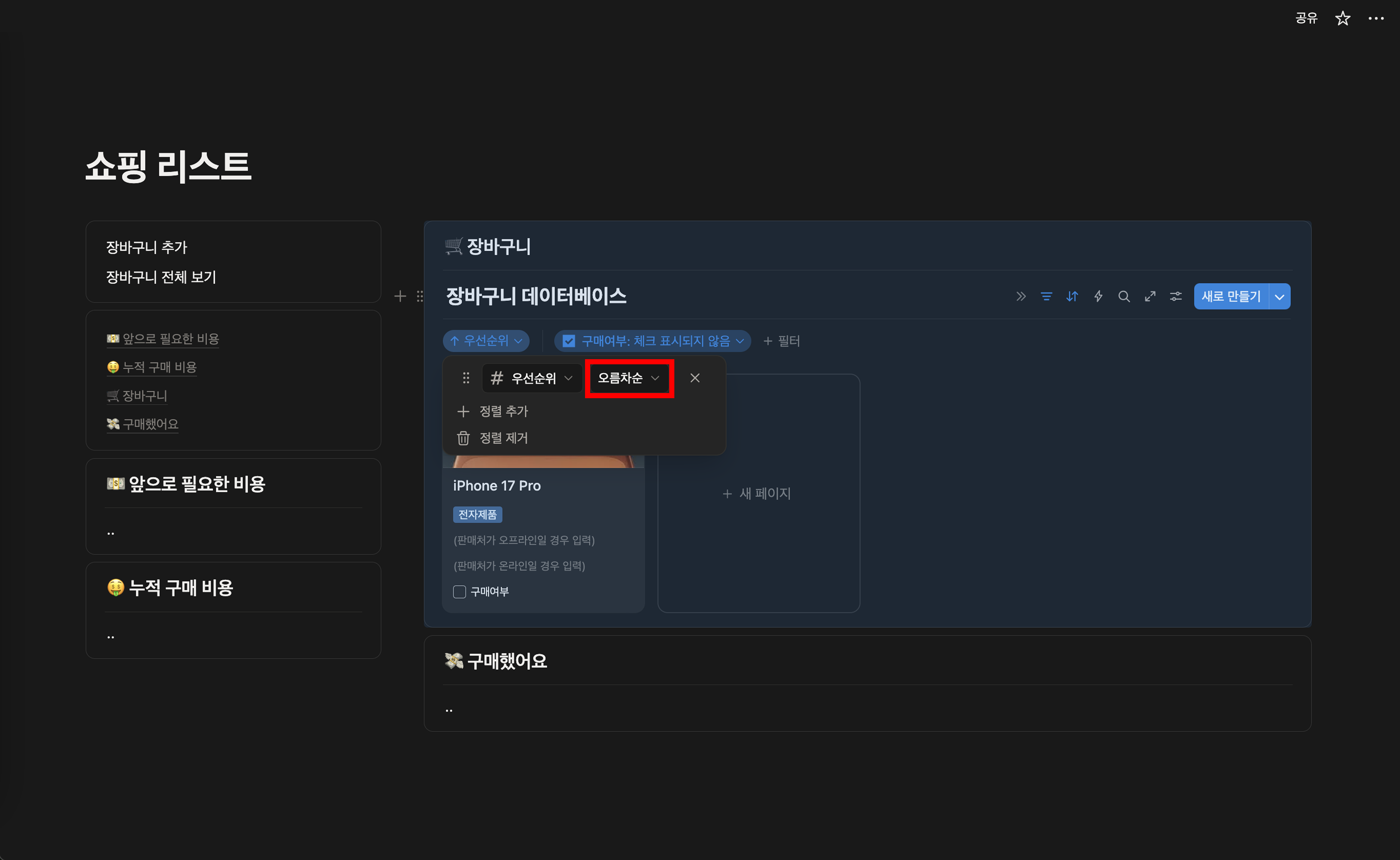 [๋ ธ์ ์ผํ ๋ฆฌ์คํธ ๋ง๋ค๊ธฐ] 4. ์ฅ๋ฐ๊ตฌ๋ ๋ฐ์ดํฐ๋ฒ ์ด์ค ํํฐ ๋ฐ ์ ๋ ฌ ์ถ๊ฐํ๊ธฐ