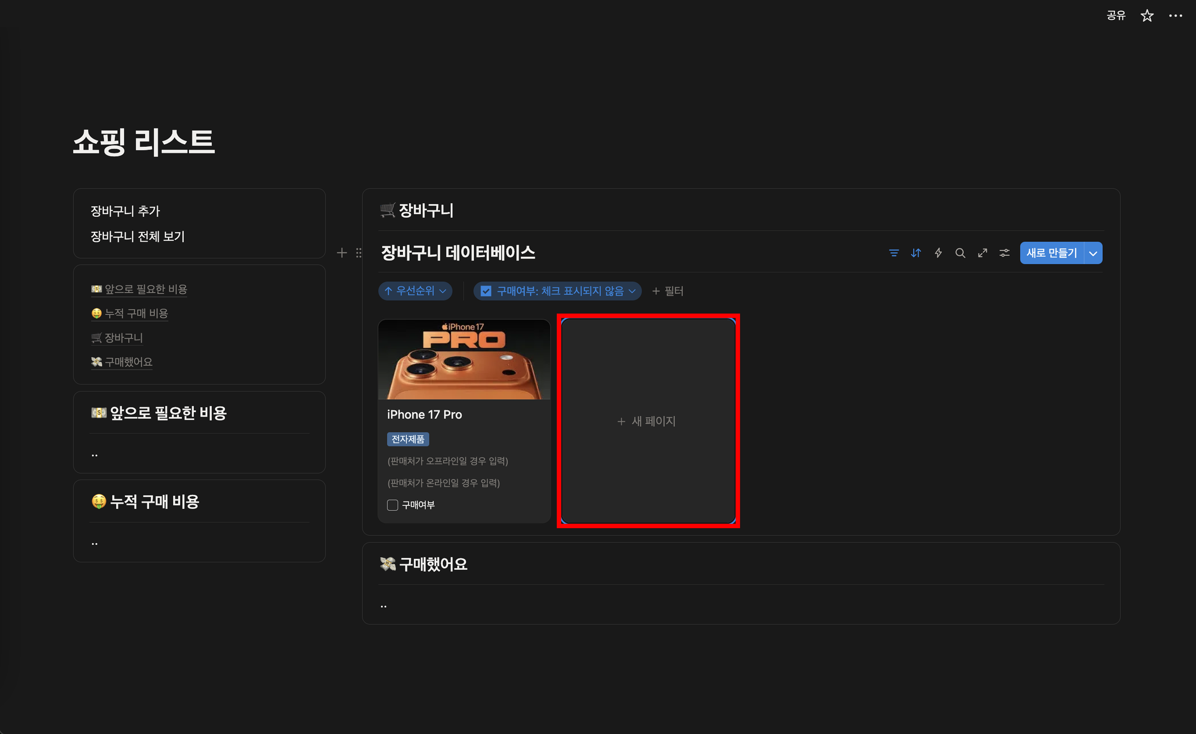 "+ ์ ํ์ด์ง"๋ฅผ ๋๋ฌ ์ํ๋ ๋งํผ ์ฅ๋ฐ๊ตฌ๋ ๋ฆฌ์คํธ๋ฅผ ์ถ๊ฐํ๋ค.